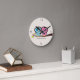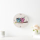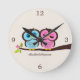 Custom designer wall clock features an adorable vector illustration of a couple of owls perched on a branch in beautiful colour schemes. Personalise with your name, monogram, initials, or a special date such as your wedding anniversary!
