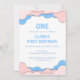 Pink And Blue Paper Cut First Birthday Invitation