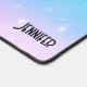 Desk mat with a whimsical background. A pastel pink and blue gradient colour scheme. Little white stars scattered around. Whimsical and magical design.