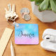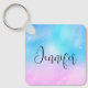 Personalised keychain with a whimsical background. A pastel pink and blue gradient colour scheme. Little white stars scattered around. Whimsical and magical design.