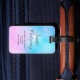 A luggage tag with a whimsical background. A pastel pink and blue gradient colour scheme. Little white stars scattered around. Whimsical and magical design.