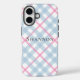 Pink and Blue Plaid Personalized Name Case-Mate iPhone Case
