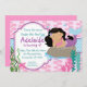 Pink and Blue Polka Dots Brunette Mermaid Birthday Invitation