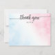 This flat note features a watercolor pink and blue background on front and back,  script "thank you" with swashes  and your custom text.  Use the template form to add your personalisation.  Choose the "customise further" option to change the font.