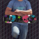 pink and blue skull skateboard