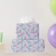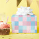 A wrapping paper designed with a square pattern in pink and blue tones.