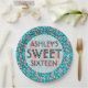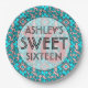 These paisley blue and pink sweet sixteen party plates read "Ashley's Sweet 16". Personalise them with the birthday girl's name and party information. For more sweet sixteen party accessories visit the rest of this shop!