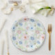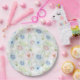 Pink and blue watercolor flowers. paper plate