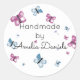 Pink and Blue Watercolour Butterfly Handmade by Classic Round Sticker