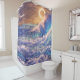 Pink and Blue Waves Golden Horizon Shower Curtain