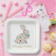 Pink and Blue Wildflower Easter Rabbit Paper Plate
