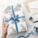 This beautiful gift wrap wrapping paper features adorable spring rabbits of pink and blue wildflowers and leaves on white.