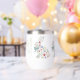 This Easter holiday thermal wine tumbler features adorable spring rabbits of pink and blue wildflowers and leaves. Personalize with your choice of name or special text. Fun for Easter gift baskets and party favors.