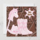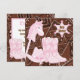 Adorable brown bandanna with pink cowboy boots, cowboy hat, sheriff badge and stick pony baby girl cowgirl shower invitations. Add your details to the front and/or back of this cute pink and brown cowgirl baby shower invitation by adding your event details, font style, font size & colour, and wording.