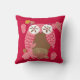 If you love owls you'll love this Pink and Brown Owl pillow featuring an owl with coloured leaves, a bunny, tree, and acorns in pink and brown!