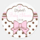 Pink and Brown Polka Dots With Baby Footprints Classic Round Sticker