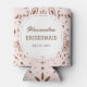 Personalise these blush pink and brown cowgirl bandanna patterned can coolers with the bride to be's name, event name, location, date and each guest's name and wedding role or title. Decorate the bar, snack table and more and create a bachelorette party with all the personalised details to show off on TikTok or the 'gram. The classic western inspired bandanna paisley pattern coordinates with a girls' weekend or birthday party fit for a cowgirl.