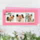 Small pink and coral red vertical stripes give this three photo holiday card a modern and chic vibe with classic fonts and a long customised message for friends and family.