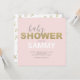 Are you planing a baby shower and wondering where to buy invitations? This cute square baby shower invitation features your name set in a bold modern font with the word Baby in handwritten script typography and Shower in faux gold over a blush pink background. The invite card reverses to a complimentary gray background with a trendy hand lettered xo theme. A modern choice for your Valentine's baby girl shower invitation suite, announcement or baby sprinkle brunch. To see more of this February due date pregnancy contemporary stationery set visit DoTellABelle on Zazzle.