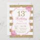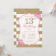 Pink and Gold 13th Birthday Invitation. Pink and Gold Glitter. Pink and White Stripes. Pink Floral Flower. Kids Birthday. Girl Birthday Party. For further customisation, please click the "Customise it" button and use our design tool to modify this template.