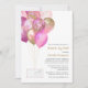 Glitzy long distance baby or bridal shower by mail invitation featuring pink and gold glitter and confetti balloons.
