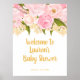Pink And Gold Baby Shower Welcome Sign, Floral Poster