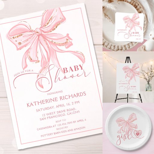 Pink Bow Elegant Girl Baby ShowerDesigned by Ivanka Terzieva