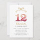 Beautiful and modern 12th birthday invitation for girls in pink and gold.