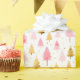 This elegant and festive wrapping paper is versatile and can be used for giving gifts or art and craft projects. It is perfect for Christmas and the holiday season. The design features watercolor pink and gold Christmas trees.