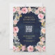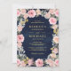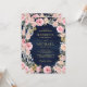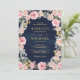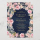 Pink and Gold Floral QR Code Navy Blue Wedding Invitation