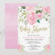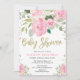 Pink and gold floral roses girl baby shower invitation