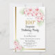 Pink and Gold Floral Surprise 100th Birthday Party Invitation