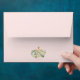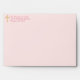 Blush pink envelope with gold cross and floral embellishments including a floral pattern inside, cross and flowers on the back, and a gold cross next to the return address. Personalise with your return address information.