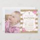 Pink and Gold Glitter Baptism Invitation with custom photo. Girl Baptism. First Communion. Christening. Child Dedication. Gold and White Stripes. Pink Floral Flower. For further customisation, please click the "Customise it" button and use our design tool to modify this template.