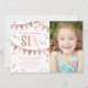 Pink and Gold Glitter Sixth Birthday Party Photo Invitation