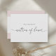 Send a message from the heart with this chic Pink and Gold Heart Will You Be My Matron of Honour Invitation Postcard. Featuring a stylish gold-tone heart motif set against a soft blush pink background, this design is the perfect balance of sweet, modern, and glamourous.