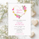 This cute and whimsical bridal shower invitation features watercolor hearts in pink and gold with flowers. The text combines handwritten script and serif fonts for a stylish and modern look. This is perfect for a spring or summer wedding.