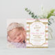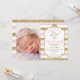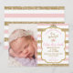 Chic pink and gold new baby girl birth announcement card. Personalise it with your baby's birth stats and your thank you message easily and quickly, simply press the customise it button to further re-arrange and format the style and placement of the text and to add a photo.