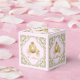 Beautiful pink and gold carriage princess baby shower favour boxes. These elegant royal baby shower boxes are easily customised for your event. You can remove the text and add your own.