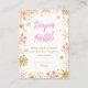 This elegant and glamourous diaper raffle enclosure card features watercolor pink and gold faux glitter snowflakes and sparkles on a white background. It is perfect for a winter or Christmas themed baby shower.