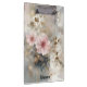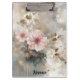 Pink flowers with gold accent foliage, on a grey and pink background creates a beautiful example of the wabi-sabi aesthetic, the embrace of imperfection, impermanence, and the transient nature of existence. The back of the clipboard resembles the background on the front, with a few leaves and no flowers.