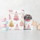 Wrapping paper featuring a whimsical pink and gold watercolor Christmas tree pattern, perfect for adding a touch of festive elegance to your holiday gifts.