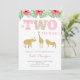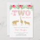 Pink and Gold Wild Safari 2nd Birthday Party Invitation