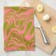 Pink and Green 1970s Retro Modern Swirl Tea Towel
