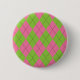 A pretty pink and green argyle pattern with black accents on a pin back button