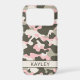 Customise this pink, green and cream camouflage iPhone 17 pro case with your name in a trendy modern CAP font in dark green on cream. It's so modern, girly and trendy! Perfect for any country girl!