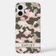 Customise this pink, green and cream camouflage iPhone 16 case with your name in a trendy modern CAP font in dark green on cream. It's so modern, girly and trendy! Perfect for any country girl!