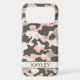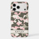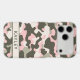 Customize this pink, green and cream camouflage iPhone 17 pro max case with your your name in a trendy modern CAP font in dark green on cream. It's so modern, girly and trendy! Perfect for any country girl!
