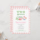 This pretty and colorful 2nd birthday party invitation design features my original art (the fruit and vegetable images and also the pink and white gingham check). I've set the template up for TWO grown 2nd birthday party but all of the text fields are customizable to your needs. You can add or delete text fields in the design tool. Underneath the text customization box, click to "customize further".
