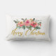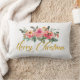 Pink and Green Floral Add Name Merry Christmas Lumbar Cushion
